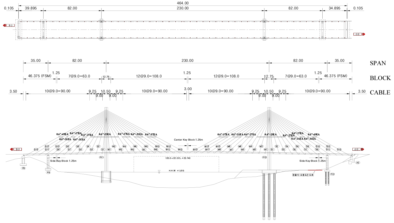 연구목적: 사장교의 2차원 단면 교량모델에 대한 원 설계 당시의 전산유동장 해석결과(CFD)와 교량에 배전관로 및 이동식 점검차 레일 첨가 시 2차원 모델의 결과를 …