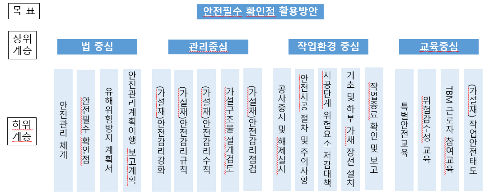 연구목적: 본 연구는 건설 현장에서 추락사고의 비중이 가장 큰 가설재에서의 안전필수확인점(Hold Point) 필요성을 목표로 한다. 연구방법: 공사관련 업무를 수행하는 건축, 토목, 안전 …